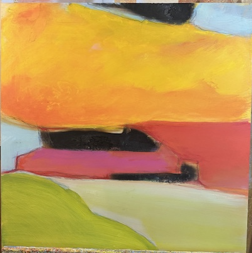 My style of painting abstract landscapes is heavily focused on colour and composition; it is a driving motivation for me. I like to experiment with colour, texture and materials through the use of oil paints, wax, fire and burnt ply.